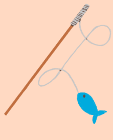 Les jouets de chasse pour exprimer leur instinct naturel et leur assurer une activité physique : cannes à pêche (avec proie, plumes, grelots, corde…), les balles, les souris agrémentées d’herbes à chats.